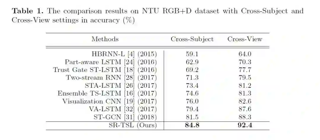 ① 在NTU RGB+D数据集上的实验结果: