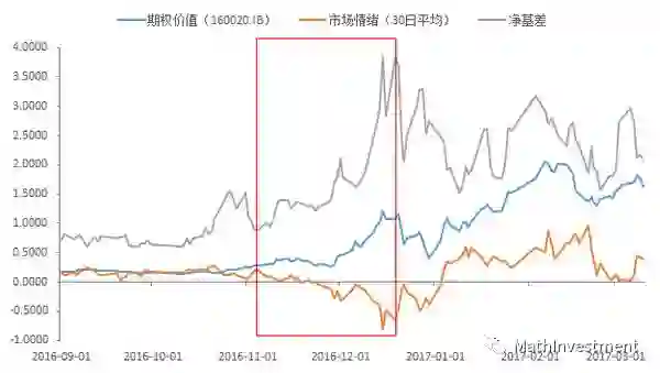 图16:转换期权价值与市场情绪对净基差的影响相反案例1(T1703-160020.IB)
