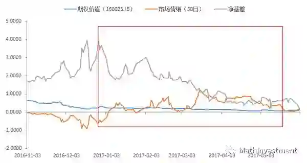 图15:转换期权价值与市场情绪均对净基差有负向影响的案例(T1706-160023.IB)