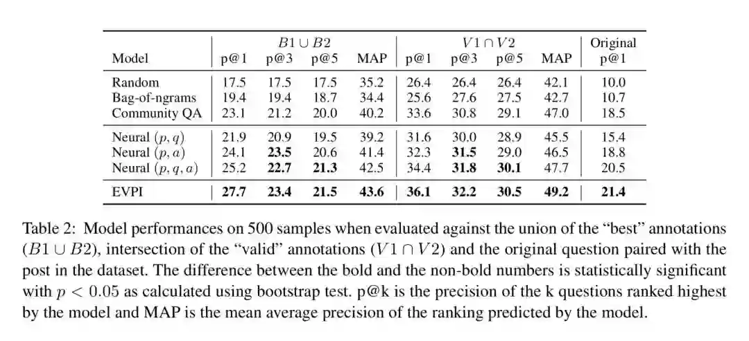 本文是马里兰大学发表于 ACL 2018 的工作,论文基于完全信息期望值(EVPI,expected value with perfect information)架构构建了一个用于解决澄清问题排序的神经网络模型,并利用问答网站“StackExchange”构建了一个新的三元组(post, question, answer)数据集,用于训练一个能根据提问者所提出的问题来给出澄清问题的模型。