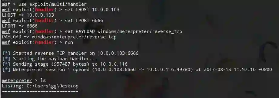然后目标一不小心点开了这个ppt文件的时候:即可在 MSF 反弹 metertprter 的 shell 出来: