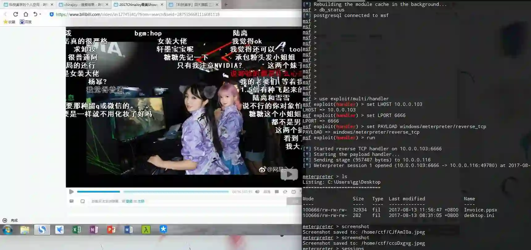 将生成的恶意 Invoice.ppsx 文件重命名为:2017showgirl联系方式.ppsx 复制到目标靶机 windows7系统。