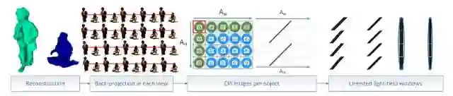 由于光场在捕获静态场景时需要大量的视点,从而就会产生大量的数据。最近,在虚拟现实和增强现实(VR / AR)的沉浸式内容应用上发现,摄像机阵列也可以用来获得光场的动态场景,但是传统的视频编辑技术又不适合编辑这些数据,因为在多个离散视图形成的光场中存在编码空间和时间的冗余。在本文中,作者提出了一种时空相干动态光场影像的研究方法,如图1所示。这使得使用了沉浸式VR的光场影像技术得到了广泛运用。