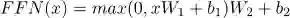 是参数矩阵。 然后使用具有两个线性层和 ReLU 激活功能的前馈网络(FFN)。 设