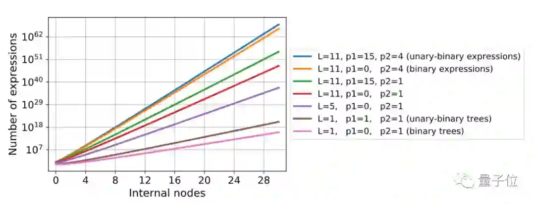 可以观察到,叶子节点和二元运算符的数量会明显影响问题空间的大小。