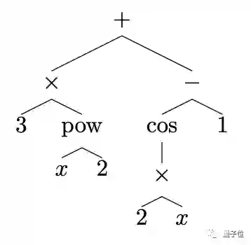 运算符和函数为内部节点,数字、常数和变量等为叶子节点。