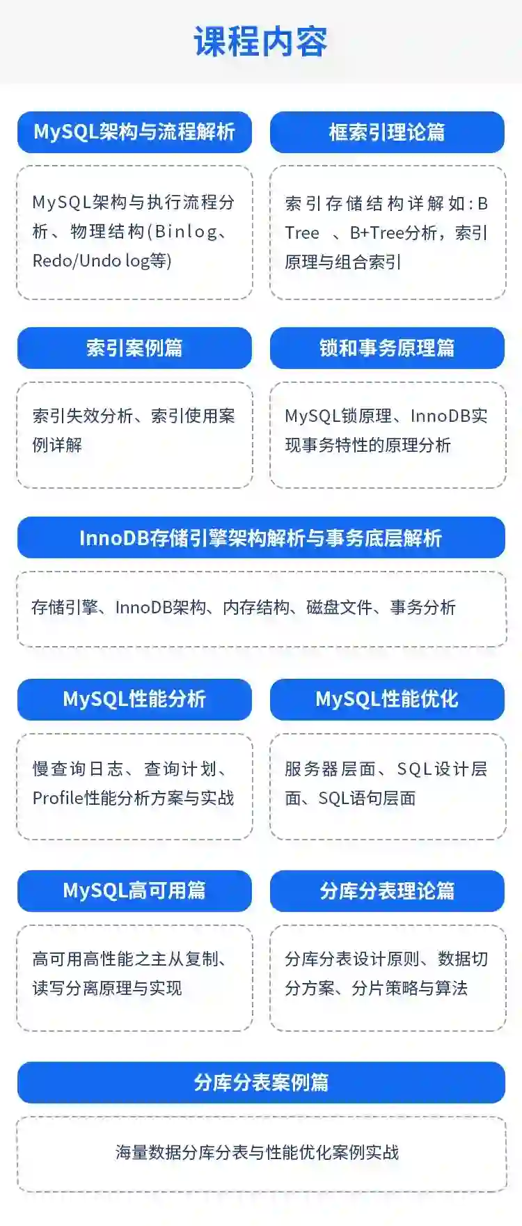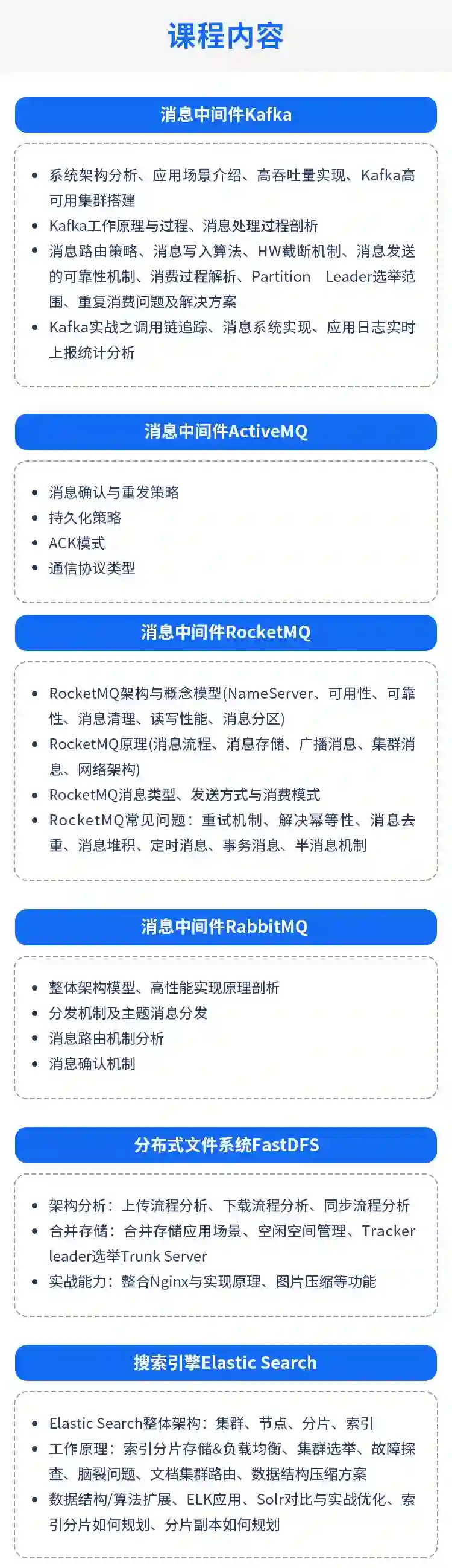 经过多期持续迭代,课程内容涵盖了互联网架构师岗位的主流需求,从编码功底到高并发实战,严格按照项目驱动的方式,从 0 到 1 教授大型互联网项目方案的开发落地,带领学员了解完整的架构演进历程与设计思路,知识体系如下: