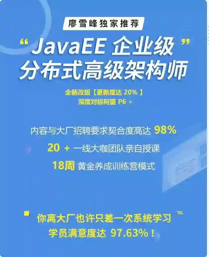 至于如何学习才能掌握这些能力,还是建议听听前辈们的经验。这里,为你推荐下开课吧廖雪峰老师的 Java 高级架构师课程。同时,现在报名的话,还能赶上正在火热进行的「开课吧战疫培优计划」。