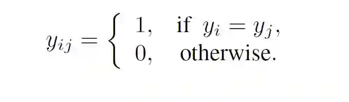 原始的两类五个样本数据都是图像,所以首先 a)我们将图像输入到卷积神经网络(Convolutional Neural Networks)中提取特征,得到数据样本的特征表示,之后根据已有特征建立邻接边并初始化,形成一张全连接图(fully-connected graph),每一条边都指代着它连接的两个节点的关系类型。图的构造用数学形式表示为 G=(V,E;T),对于每一个任务 T,一个图对应着一个节点集合 V,一个边集合 E。对于支持集的边标签我们采用节点的标签进行表示如下: