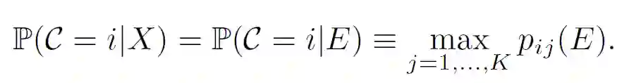 首先图像输入骨干网络并通过池化得到输入 RepMet 子网络模块的输入特征向量,输入特征进入到几个全连接层构成的 DML 嵌入模块得到对应的嵌入特征向量 E,之后便是距离衡量的模块,计算出嵌入特征 E 与多个类别的表征向量的距离,此距离也在之后用来计算所给出图像的后验概率,公式如下: