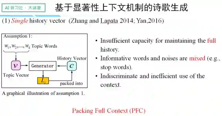 第一种是认为一首诗的生成过程中,历史信息可以被一个单独的历史向量存储和利用。