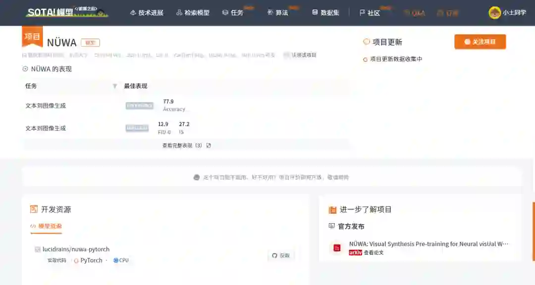 当前 SOTA!平台收录 NÜWA 共 1 个模型实现资源。