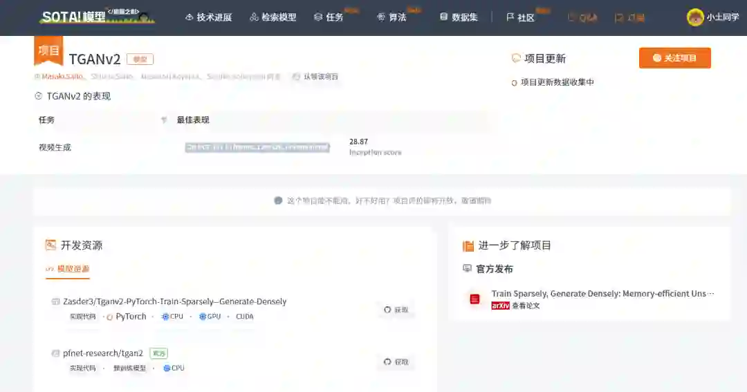 | TGANv2 | 前往SOTA!模型平台获取实现资源:https://sota.jiqizhixin.com/project/tganv2-2021 |