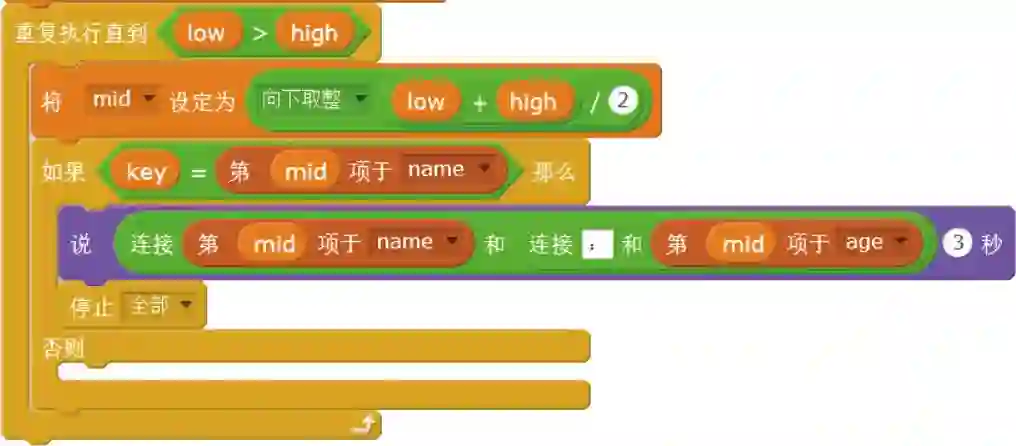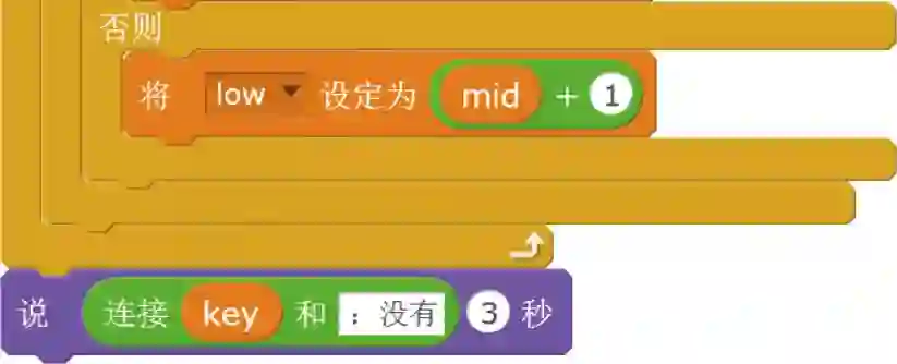 7. 如果直到low>high时依然没有找到 key,则说出“没有”。程序创建完成。