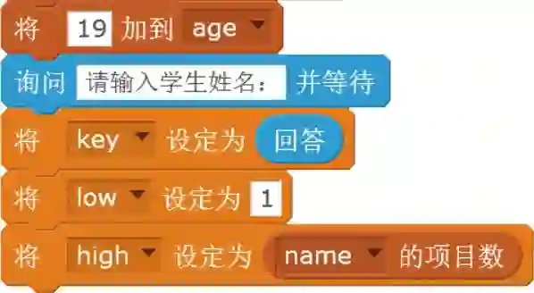 2. 建立变量 key,设为要搜索的数据。建立变量 low,设为 1;建立变量 high,设为列表 name 的项目数。