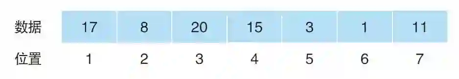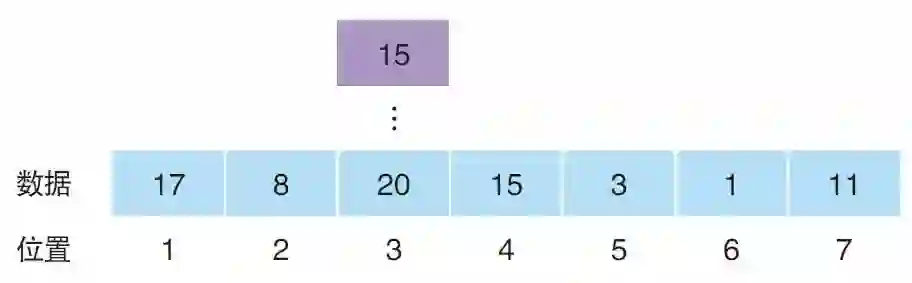 该数组中有7个数据,首先与第一位数据17进行比较,与我们要搜索的数据15不同,因此移动到下一步。