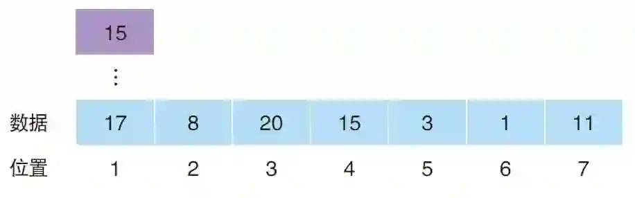 线性搜索就是在给出的数组中, 按顺序逐个比较每一项,从而找到所需数据。下面通过具体实例(下列数组中搜索15)逐步学习线性搜索。