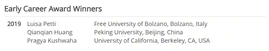 博黄芊芊导获2019 IEEE青年成就奖,全球共有3位研究者获奖。