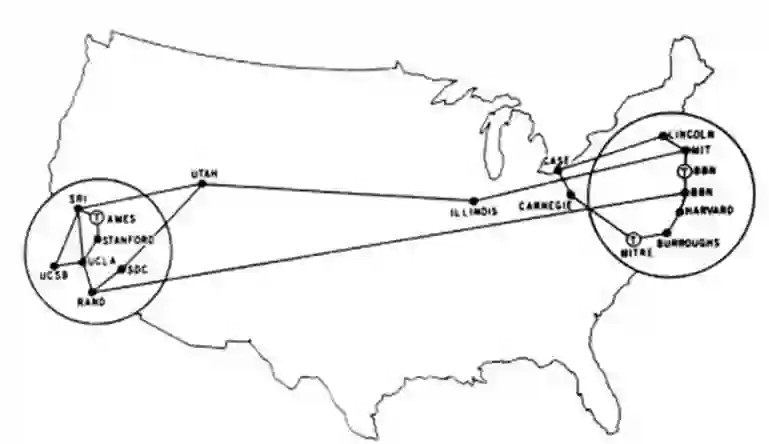 ARPANET最终连接了美国的军事设施、第三方承包商和少数几所大学。