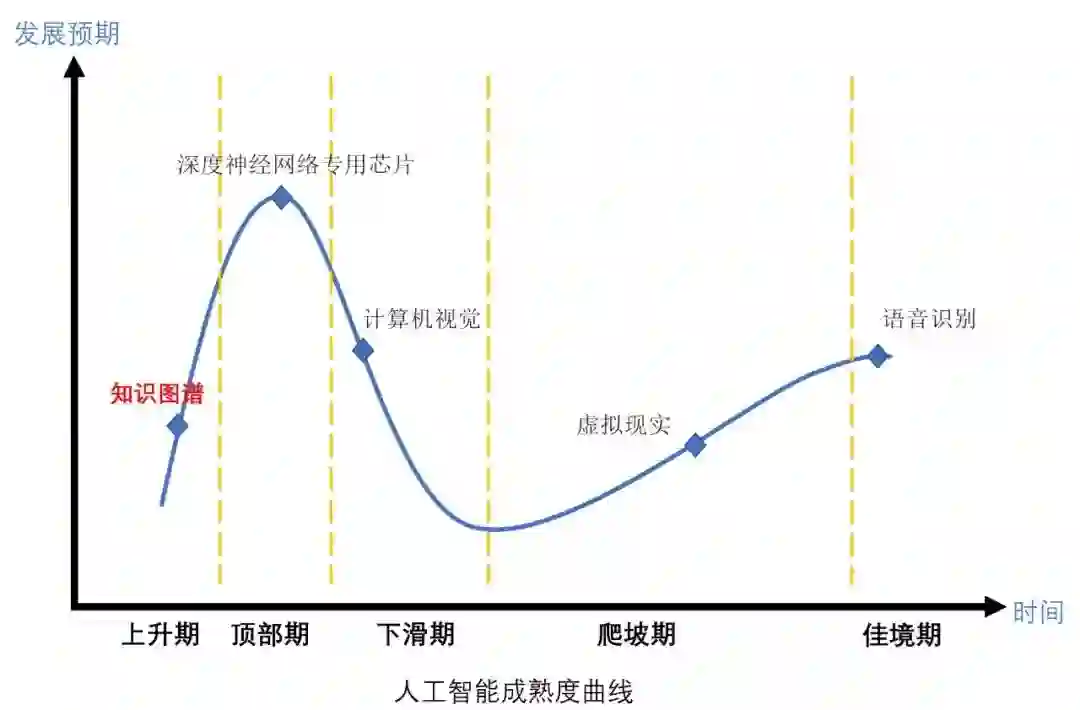 (3)循序渐进。一颗苹果树上的苹果不可能同时成熟。此时,最简单的策略就是先摘成熟的果子,坐等其他苹果自然成熟再行采摘。同样,知识图谱技术体系复杂多样,包括知识表示、知识抽取、知识融合、知识推理、知识存储和知识检索等。每类关键技术的成熟度不同,有的已进入实用化阶段,有的仍处于学术研究阶段。一个产业的发展历程通常呈现出是部分技术先成熟再逐步带动相关技术发展的特点。整个产业技术的成熟是需要经过漫长的发展周期的。企图速战速决、毕其功于一役是不现实的。知识图谱各项技术成熟程度不均衡是当前知识图谱产业实践的基本情形。大部分技术仍然停留在只能在特定测试集上取得一定效果,还难以在广泛而多样数据上取得稳定效果。具有较高产业成熟度的技术还不多。