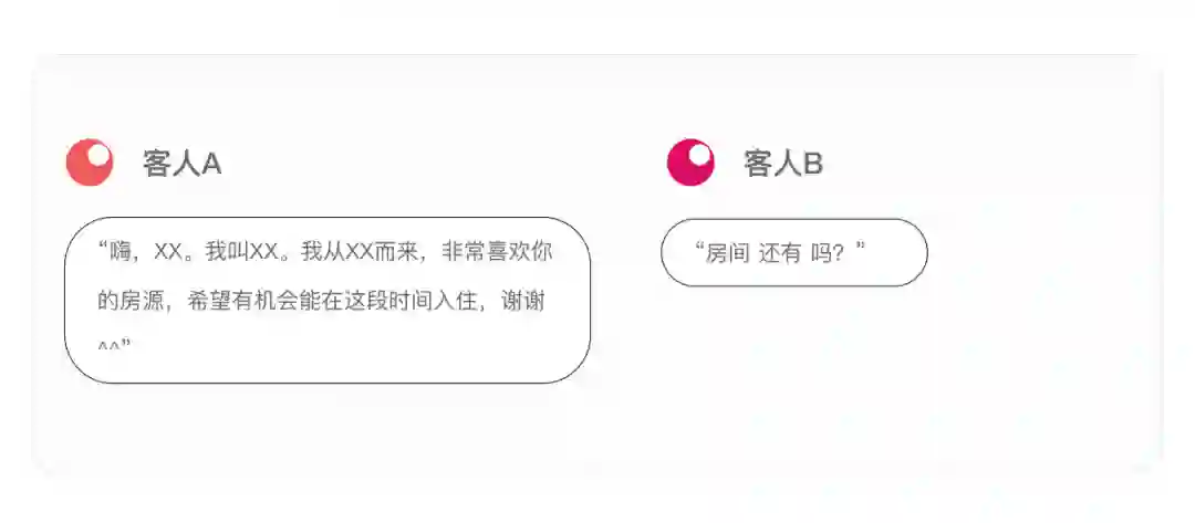 在决定下单前,你是否有过与房东沟通的经历?出于对程式的不信任在快捷回复外,我们还会想和“真实的”房东进行交流确认房屋状态以决定去留,同时与多个房东沟通时每次都需要重新问候,询问一些信息。