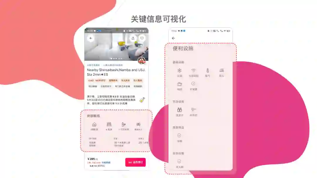 每一次与房源的接触都是新的开始,房客通过内容页寻找信息来增加确定性。面对非专业文案处理的房屋介绍,阅读起来较为吃力,进而失去耐心预定到并不满意的房屋。