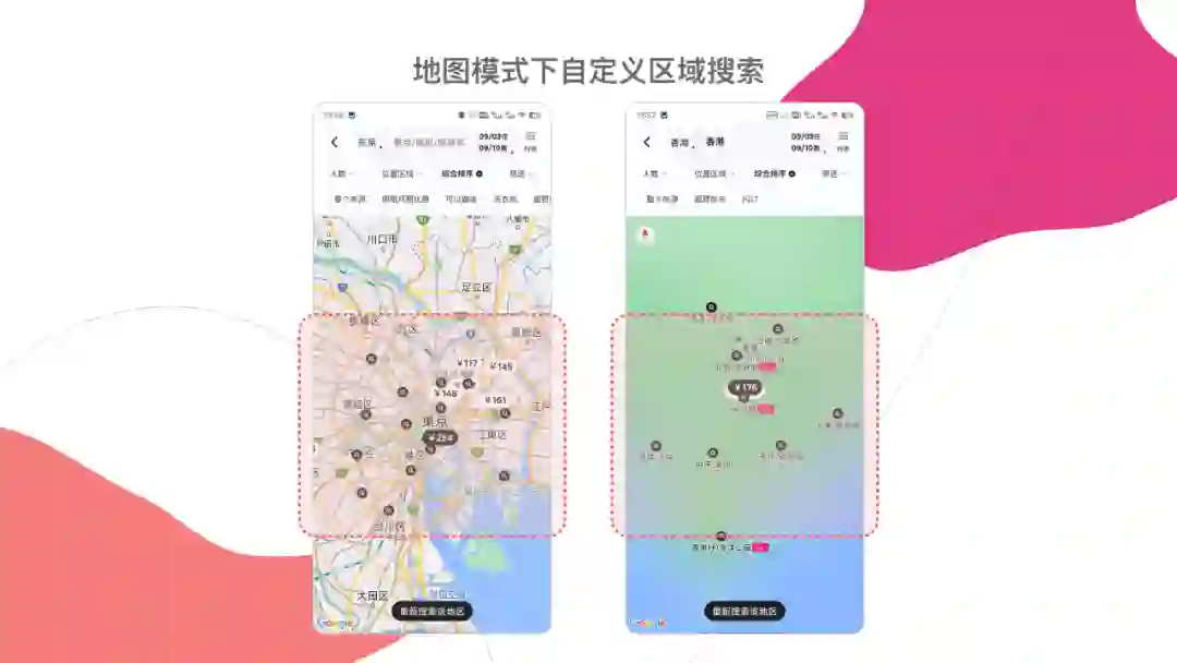 Airbnb在地图模式下对房源分布的区域进行视觉划分,通过预设的定位点做到了喜欢哪里点哪里。