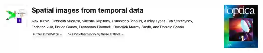 此项研究「Spatial images from temporal data」目前已在Optica杂志上发表。