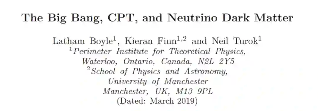 一个遵循CPT的宇宙将要求至少有一个右手性中微子的存在。这种粒子对于物理学实验来说基本上是不可见的,只是通过引力影响宇宙的其他部分。