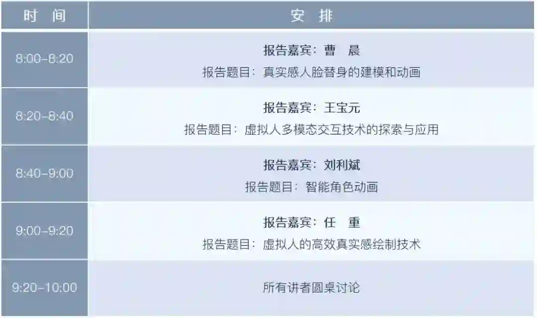 随着元宇宙的兴起,以及计算机图形学、计算机视觉、人工智能技术的快速发展,以虚拟主播、虚拟演员为代表的虚拟数字人成功进入大众视野,并在影视、游戏、传媒、文旅、金融等领域得到广泛应用。围绕着虚拟数字人这一主题,本论坛邀请了中美两国四个单位的一线研究人员,将分别就数字人脸、头发和运动建模,以及高真实感数字人绘制的关键技术汇报最新的进展,并将对虚拟数字人的当前挑战、未来趋势等热点问题开展圆桌讨论。