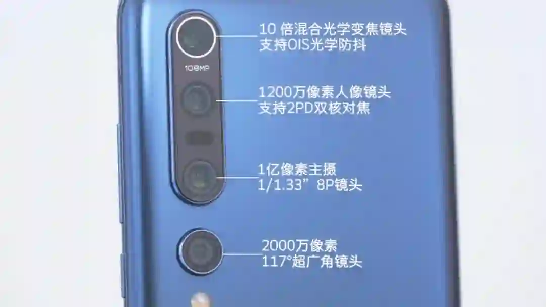 相机配置上 小米10 Pro 也采用了目前小米最强的配置组合,一亿像素主摄 +10 倍混合光学变焦、最大可 50 倍数码变焦的长焦镜头,再加上一颗 1200 万像素的人像镜头,以及一颗 2000 万像素的超广角镜头。