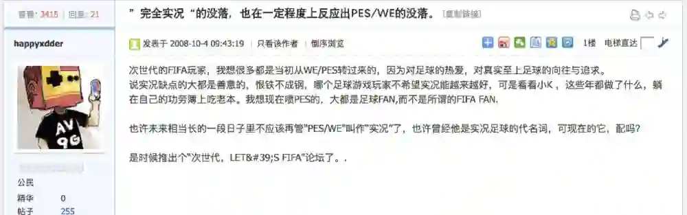 十年前国内论坛上就已经有玩家在谈论实况的没落了