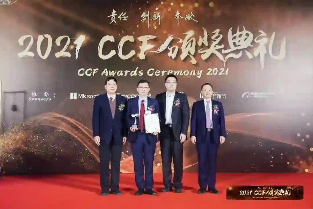 △2021年CCF杰出工程师获得者潘剑锋博士与颁奖嘉宾合影