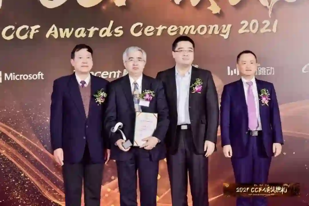 △2021年CCF卓越服务奖获奖者陈熙霖研究员与颁奖嘉宾合影