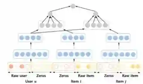 该部分表示成为用户/物品的raw vector表示,为了方便后续模型的计算处理,对两种不同维度的向量需要做填充操作