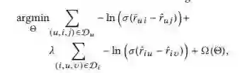 其中为sigmoid函数,上式即为常见的MF-BPR模型