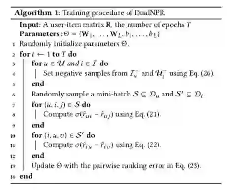 DualNPR利用用户和物品的成对排名发现用户和物品之间的真实相关性,缓解了数据稀疏问题。