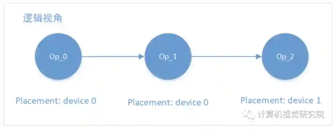 其中 Op_0 和 Op_1 的 Placement 是 Device 0,Op_2 的 Placement 是 Device 1,这就是一个流水并行的例子,Oneflow 会自动在 Op_1 和 Op_2 之间插入需要的数据搬运的 Copy Op。