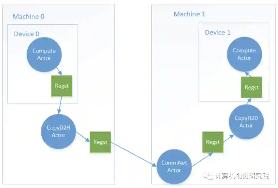 上一期“计算机视觉研究院”已经将OneFlow的背景及基础知识详细分析过,今天我们主要分析OneFlow深度学习框架最核心的部分——Actor 机制和SBP(Split、Broadcast、PartialSum) 机制。