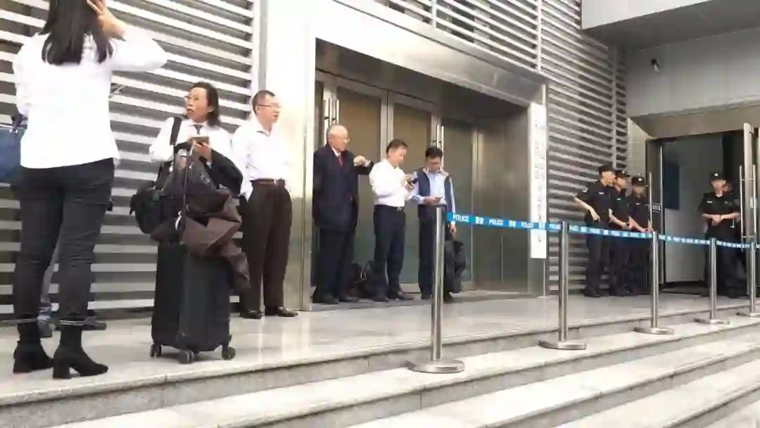 4月10日九点三十分,最高人民法院第一巡回法庭开庭宣判顾雏军案。提前在门前等候的顾雏军依旧穿着硕大西装,红色领带与右臂上的黑纱格外显眼。