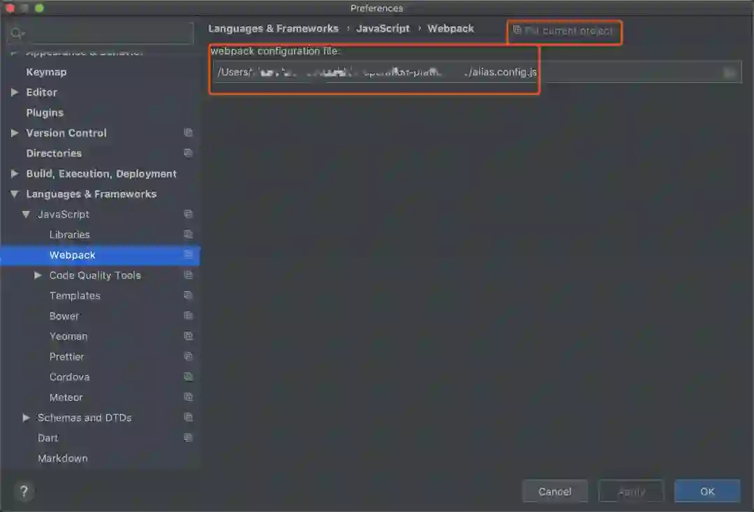 还有,若有多个项目,则要为每个项目创建 alias.config.js (文件名可以随意)文件,同样也要多次配置webstorm。
