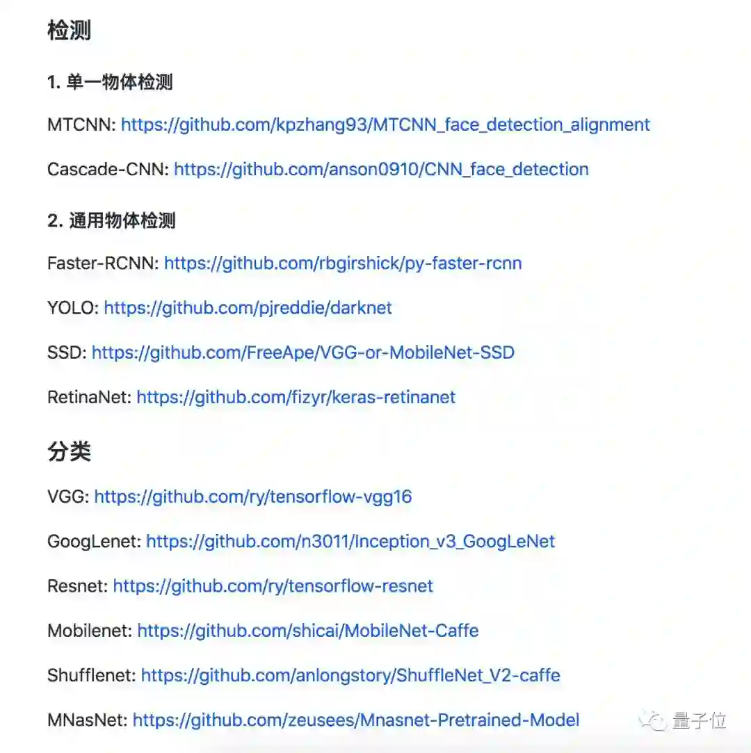 不过,这套教程并不适合还没有入门的0基础AI小白,每个章节中的所附内容还是以GitHub上的开源代码地址和相关论文为主,想看懂还是需要一定的研究基础。
