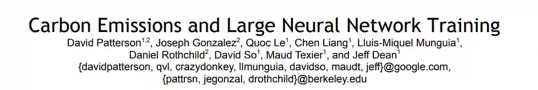 在由谷歌人工智能首席科学家 Jeff Dean 合著的一篇论文中,模型、数据中心和处理器的选择可以减少多达100倍的碳足迹,并且对模型生命周期的「误解」导致了碳排放影响的错误估算。