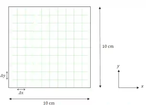 我们设置 Δx = Δy = 1 cm,得到如下的方格图。
