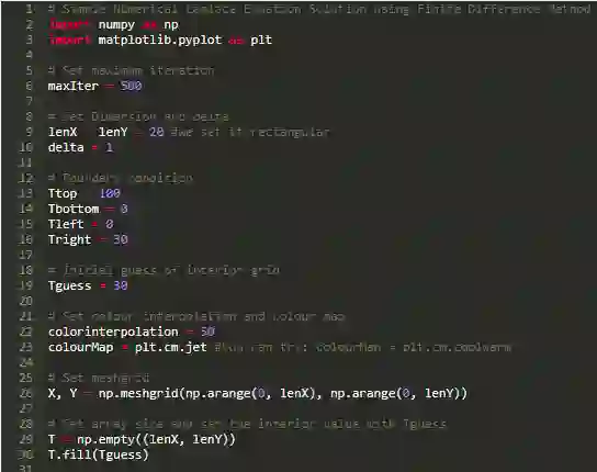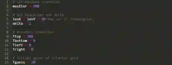 在这篇文章中,我们使用有限差分法来求解简单的热传导问题。我们的编程语言是 Python,使用的库有:Numpy(numerical library for Python) 和 matplotlib(library for plotting and visualizing data using Python)。下面将看到,我们可以使用很少的 Python 代码来实现丰富的功能。
