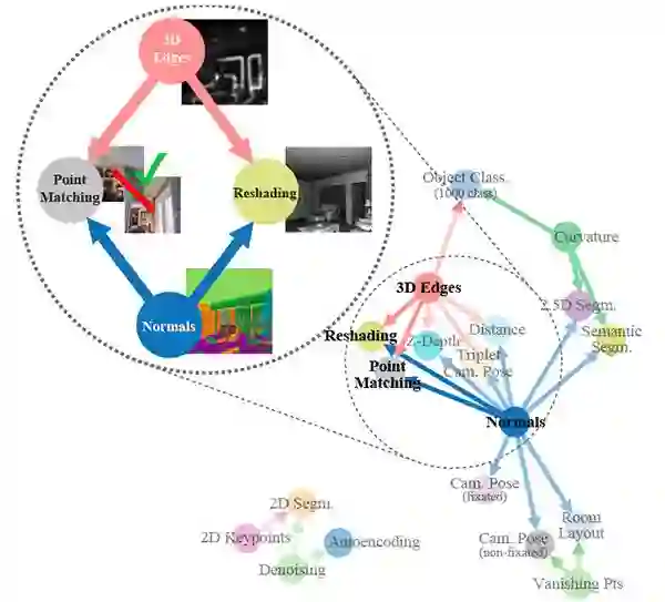 视觉任务之间有关系吗?或者它们是无关的?例如,表面法线可以被用来简化估计图像的深度吗?直觉给出了积极答案,这也意味着视觉任务之间存在着一种结构。掌握这种结构是意义重大的:它是迁移学习的基础概念,并且为识别任务之间的冗余性提供了一种原则性的方法,例如,它允许我们在相关任务之间的无缝重复使用监督信息,或者在一个系统中解决多个任务而不增加复杂性。