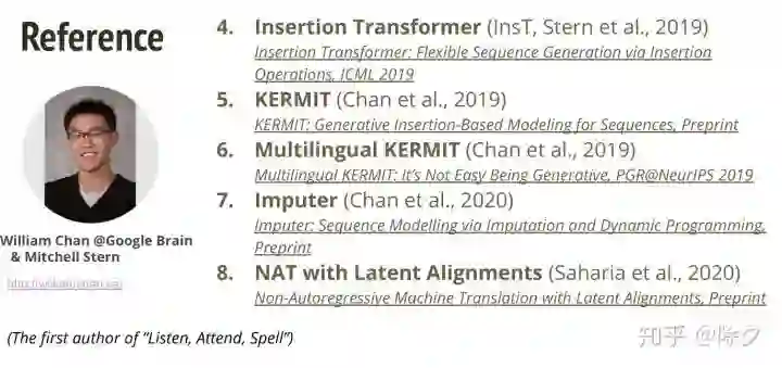 对于插入迭代优化法,KERMIT和其改进,Imputer 和 Imputer + NAT 都是由这一位谷歌大佬做的。他还是著名的 LAS 算法的一作。