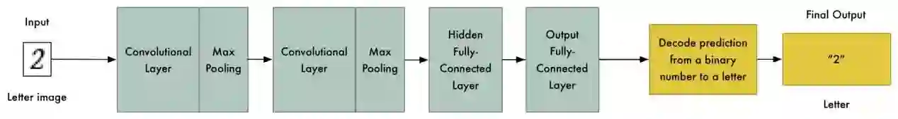 由于我们只需要辨识单个字母和数字的图片,我们不需要用到非常复杂的神经网络结构,毕竟辨识字符要比辨识一些如小猫小狗之类的较复杂的图片简单得多了。
