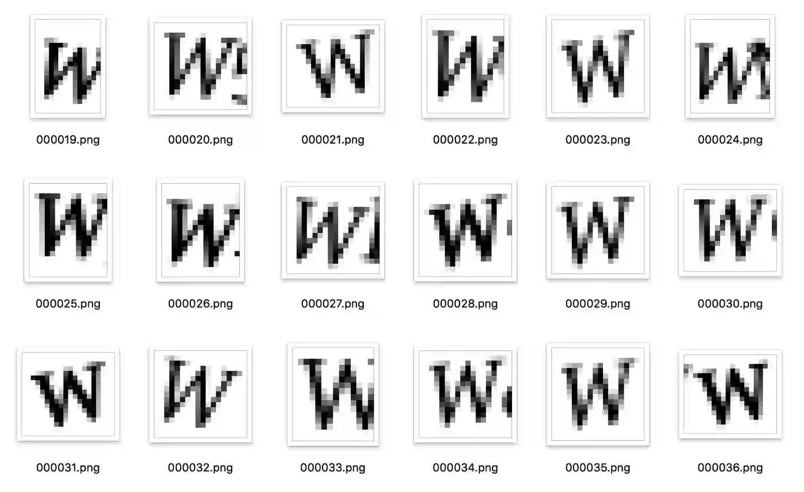 下面这张图展示的就是我在对所有图片进行字母提取之后装着所有“W”的文件夹: