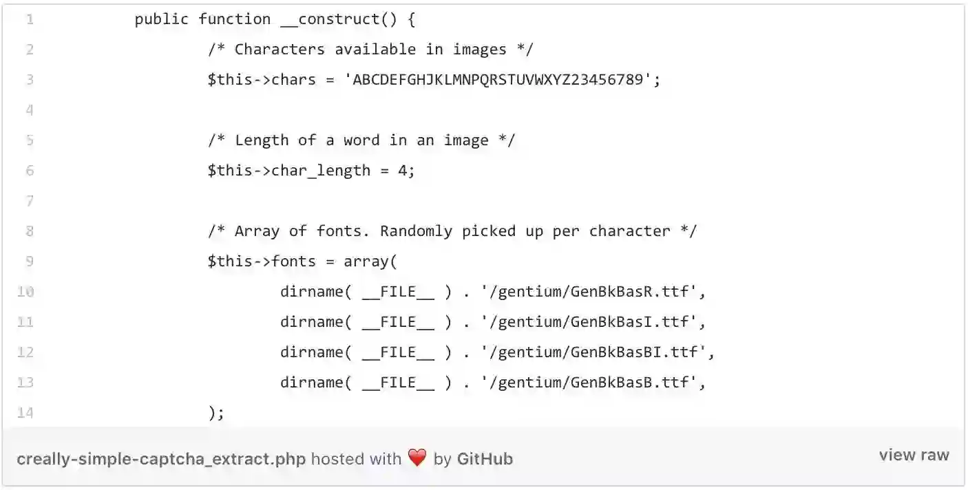 好吧,看来这是个由4个字母组成的验证图片。让我们核实一下它的PHP源代码: